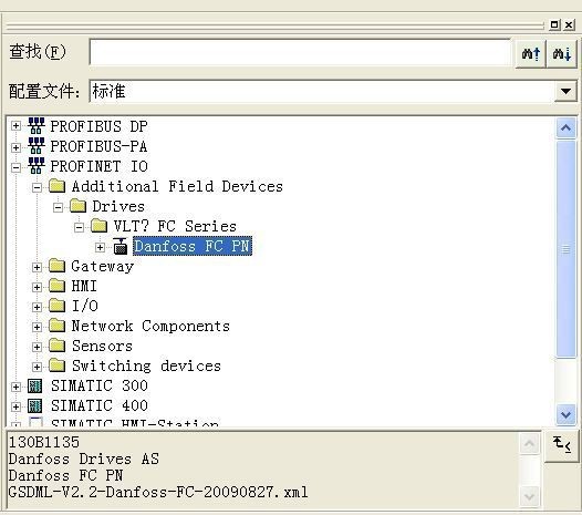 丹佛斯 FC300 系列變頻器 ProfiNet GSD 文件名為“GSDML-V2.2-Danfoss-FC-20090827. xml”(可從丹佛斯官網下載)。