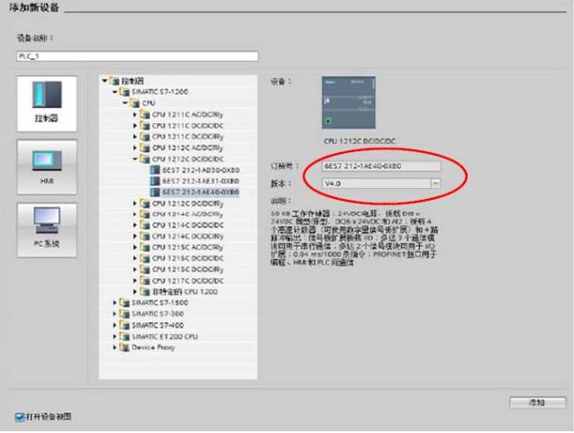 四、添加 PLC 主機,示例中使用的是 S7-1200 (6ES7 212-1AE40-0XB0):
