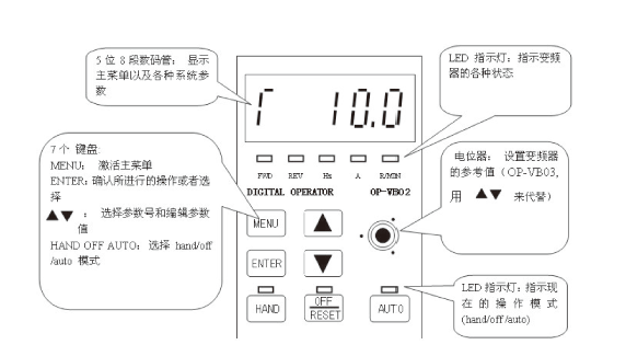 海利普變頻器的參數通過面板來進行設置。面板和使用步驟如下圖: