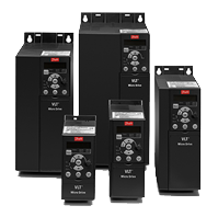 1 x 200-240 V—1.1-22 kW 1 x 380-480 V—7.5-37 kW 3 x 200-240 V—0.25-45 kW 3 x 380-480 V—0.37 kW–1 MW 3 x 525-600 V—0.75-90 kW 3 x 525-690 V—45 kW–1.4 MW |