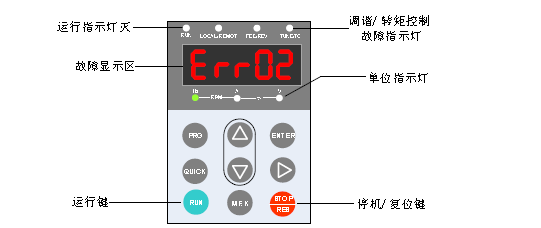 Err10 變頻器過載 負載過大或發生電機堵轉 減小負載并檢查電機及機械情況