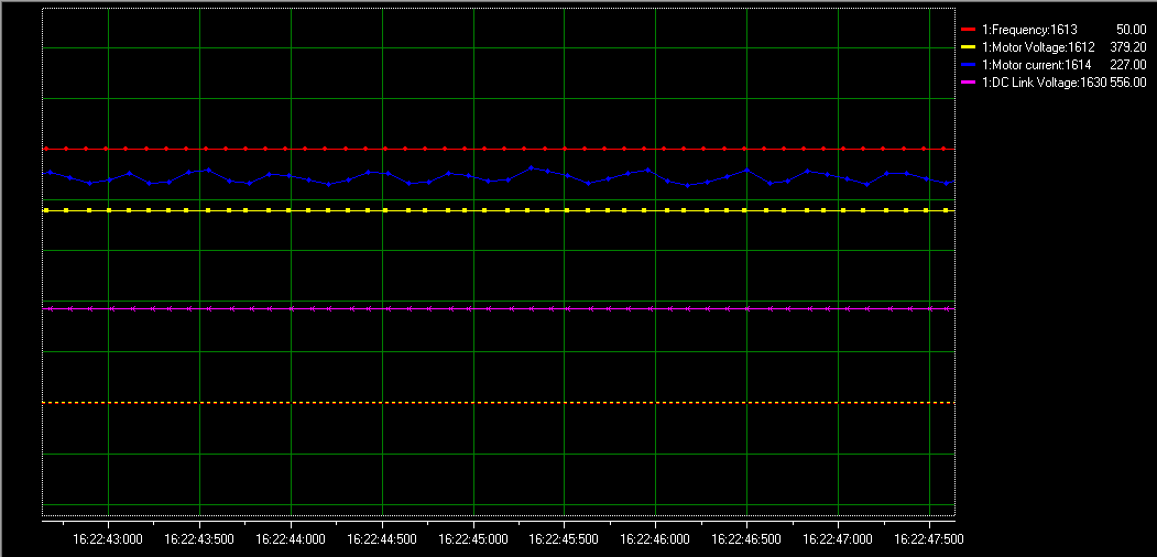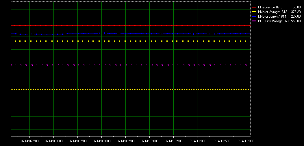 對以上參數(shù)進(jìn)行調(diào)整后,客戶描述的現(xiàn)象(電機(jī)的震動和噪音)明顯得到解決,以下為變頻器經(jīng)過調(diào)整過后的電機(jī)波形和音頻文件