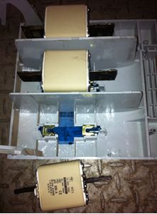 上圖為客戶現場使用的保險絲,為普通的保險絲。根據丹佛斯VLT軟啟動器MCD500操作手冊(MG.17.K2.41)P23頁上說明,軟起動器的主回路器件是可控硅,由于可控硅無自關斷能力,因此在發生短路的時候無法靠電子線路快速響應關斷的辦法進行短路保護,必須采用半導體器件保護用快速熔斷器進行短路保護。顯然使用該保險絲不符合丹佛斯軟啟動器的要求。