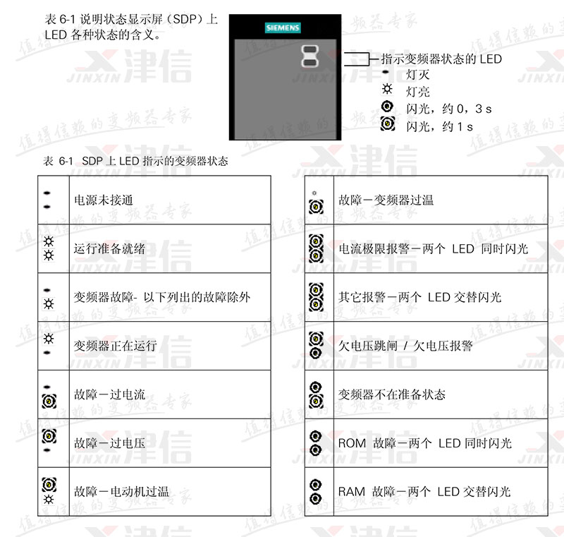 故障值: 1.有些功率部件的測試有故障 2.有些控制板的測試有故障 4.有些功能測試有故障 8.有些 I/O 模塊的測試有故障。(僅指 MM 420) 16.上電檢測時內(nèi)部 RAM 有故障 |