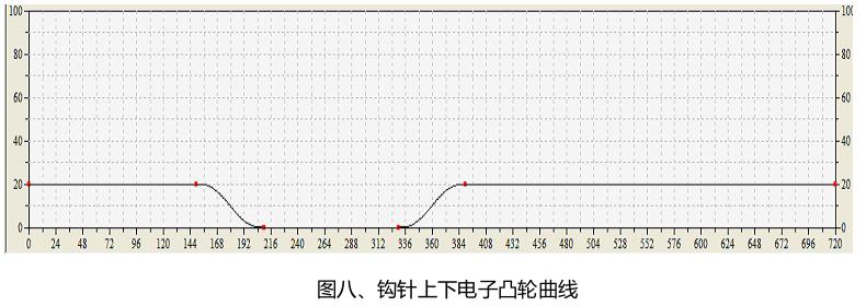 10MC總線運動控制器控制主軸運行,主軸帶動機械凸輪控制鉤針的前后運動,同時主軸又作為鉤針、上下電子凸輪的主軸信號,控制鉤針伺服、上下凸輪伺服根據預設的凸輪數據運動。