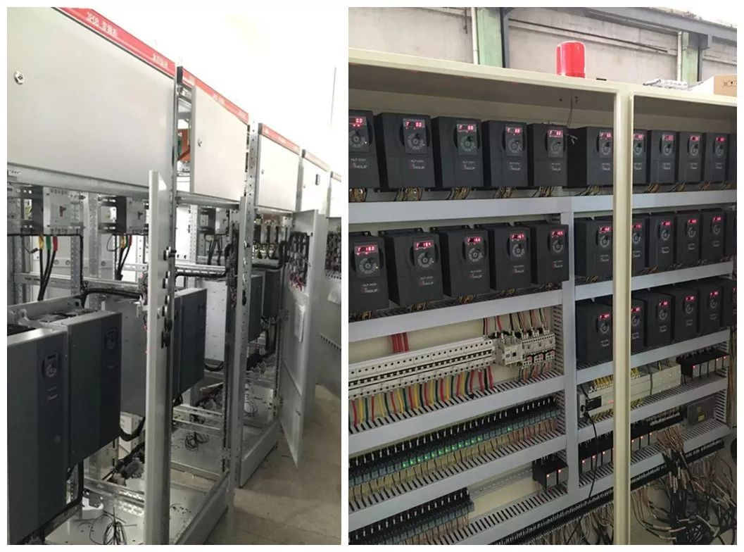 外加空壓機、羅茨風(fēng)機等。整線配備電機200余套,裝機容量超過1600 kW,可見變頻器在節(jié)能上大有作為。